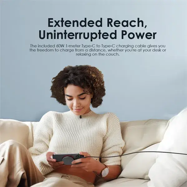 The included 60W 1-meter Type-C to Type-C charging cable gives you the freedom to charge from a distance, whether you're at your desk or relaxing on the couch.