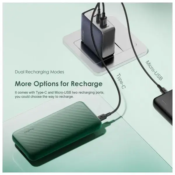 It comes with Type-C and Micro-USB two recharging ports, you could choose the way to recharge.