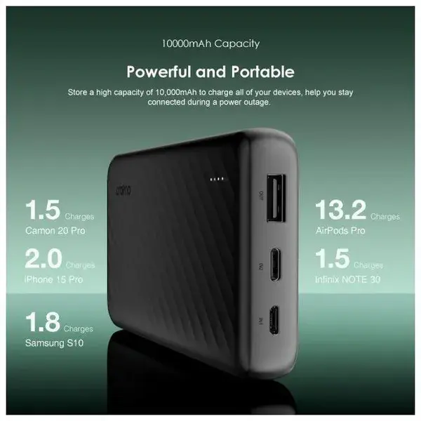 Store a high capacity of 10,000mAh to charge all of your devices, help you stay connected during a power outage.