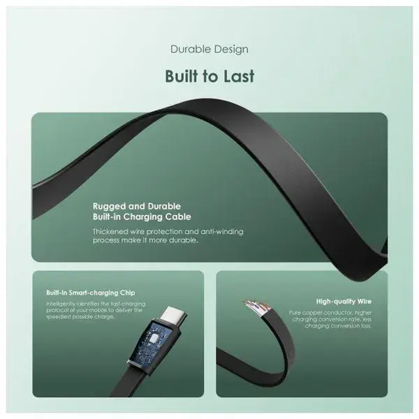 Rugged and Durable Built-in Charging Cable Thickened wire protection and anti-winding process make it more durable.