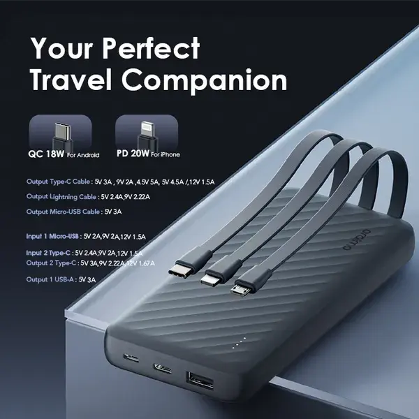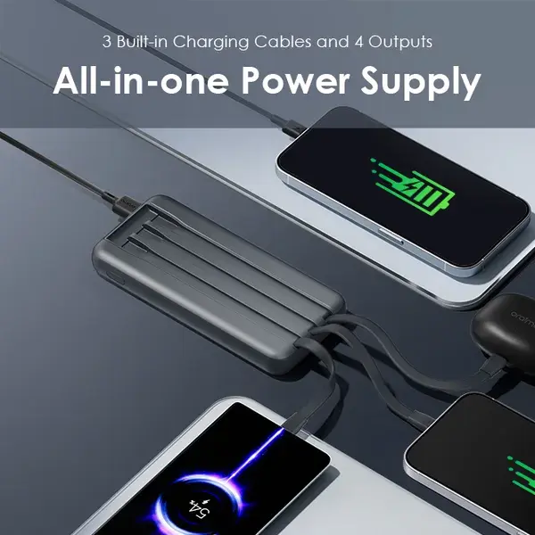 Equipped with integrated Type-C, Micro-USB, and Lightning charging cables, the power bank can conveniently meet your daily charging needs while also unlocking an enhanced fast-charging experience.